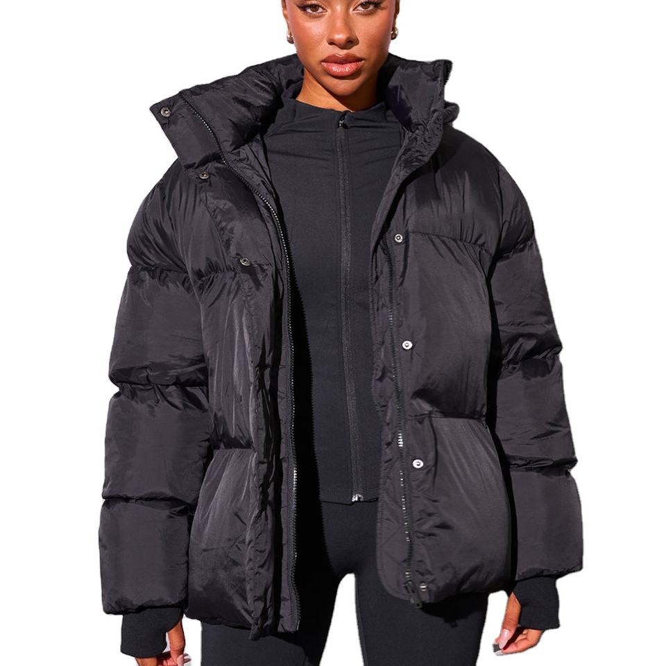 Chaquetas elegantes de fabricación Premium, chaquetas acolchadas con cuello levantado personalizadas para mujer, chaqueta acolchada ultraligera para mujer