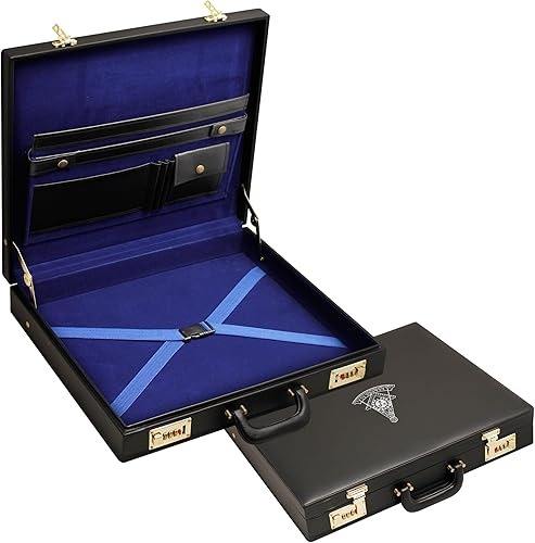 Maletín Rígido Premium para Mandil Masónico, Imitación Cuero Negro con Emblema de Past Master (Plata) (MM/WM)