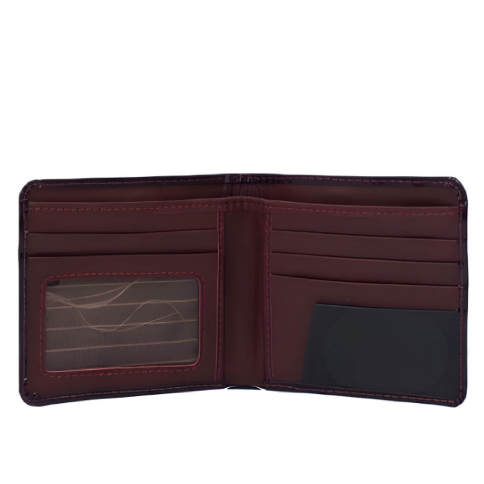 Cartera Bifold de Cuero Premium para Hombre, Cartera Delgada de Cuero Genuino Hecha a Mano, Elegante Cartera de Bolsillo Negra con Acabado Patentado, Estilo Clásico para Hombre