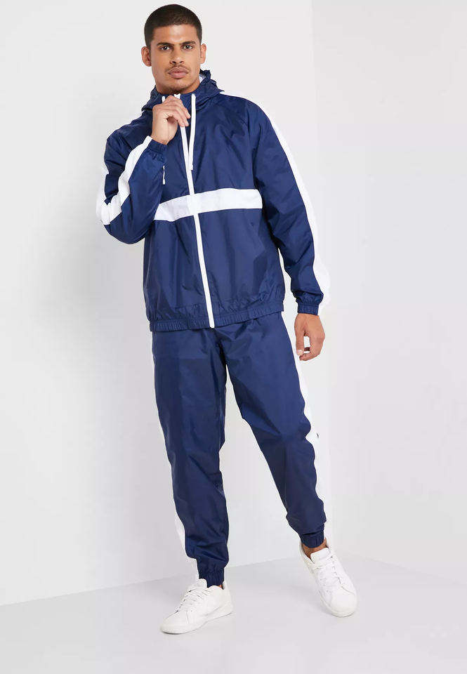 Conjunto deportivo premium para hombre con bloques de color, cortavientos, estilo moderno 2024, con cremallera, para correr, estilo urbano, conjunto deportivo de 2 piezas, logotipo personalizado