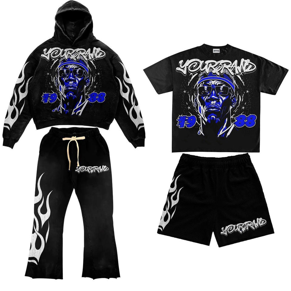 Conjunto de Sudadera con Capucha Premium para Hombre, Lavado Ácido Personalizado, Transpirable, de Algodón y Felpa, para Gimnasio, Fitness y Uso Casual