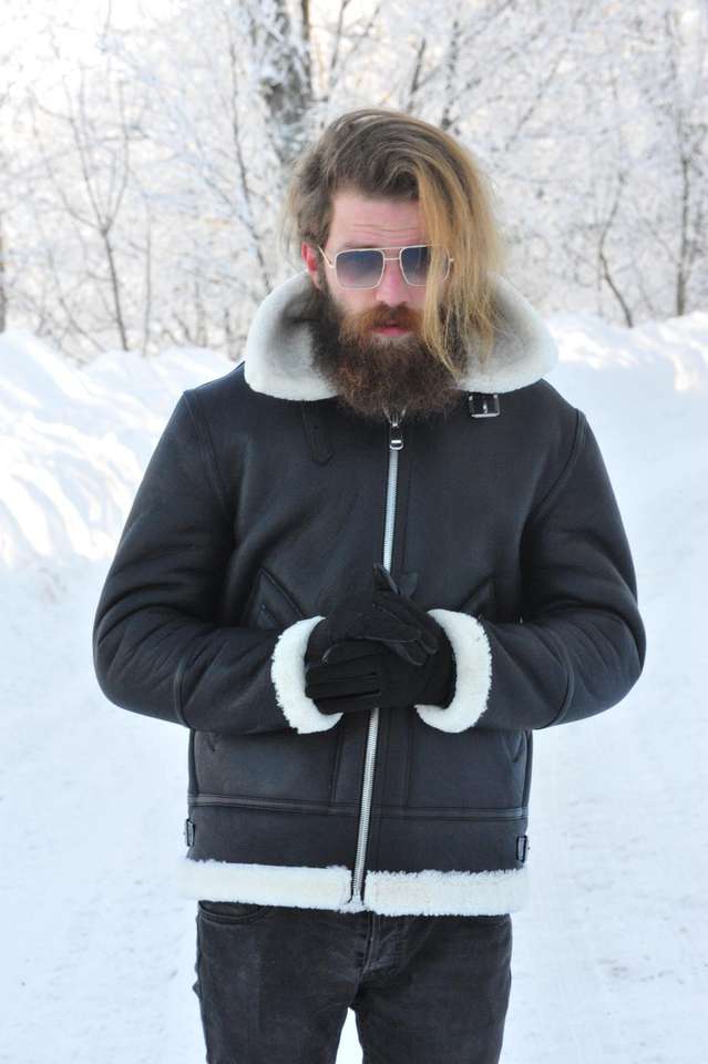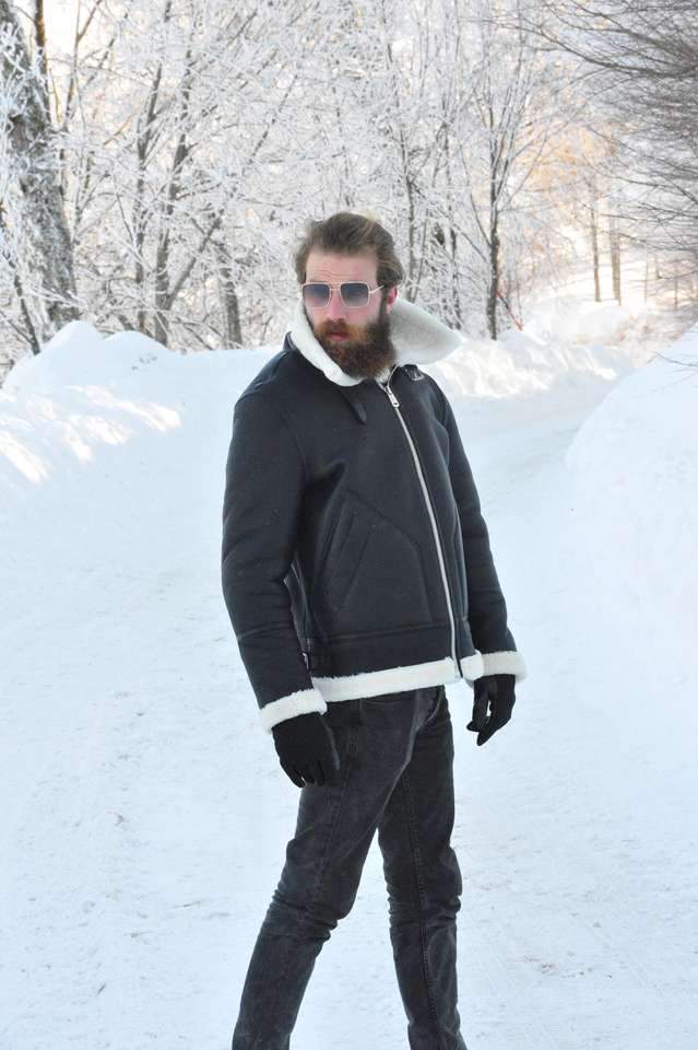 Chaquetas de piel de oveja genuina para hombres Premium con largo y cierre de cremallera