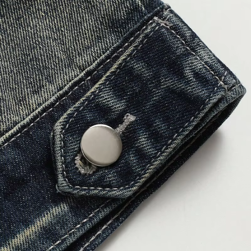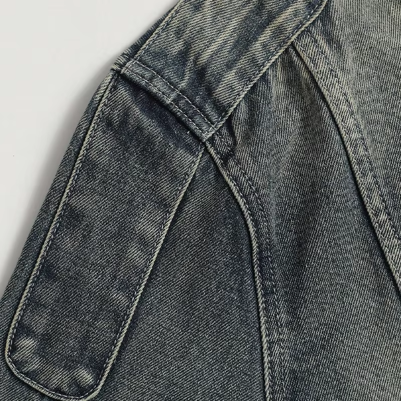 Chaqueta Vaquera Premium para Hombre, Resistente al Viento, Transpirable, Gruesa, con Parches Bordados, Estampado Personalizado en la Parte Delantera y Múltiples Bolsillos