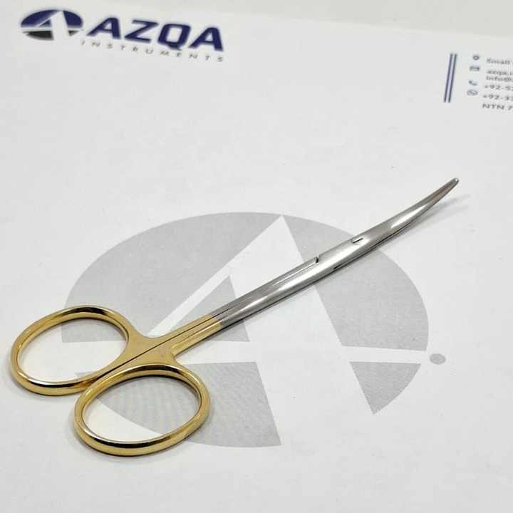 Tijeras Quirúrgicas Metzenbaum de Acero Inoxidable de Primera Calidad con Mangos Chapados en Oro para Trabajos con Tejidos Blandos