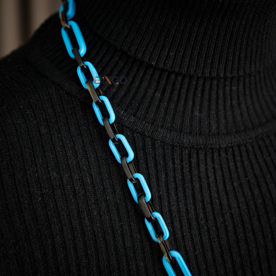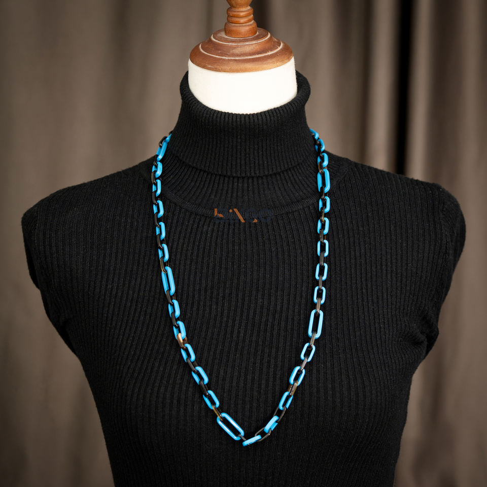 Mini collar de cadena multiusos Premium hecho de cuerno sintético en azul vibrante, accesorio de moda hecho a mano para mujer