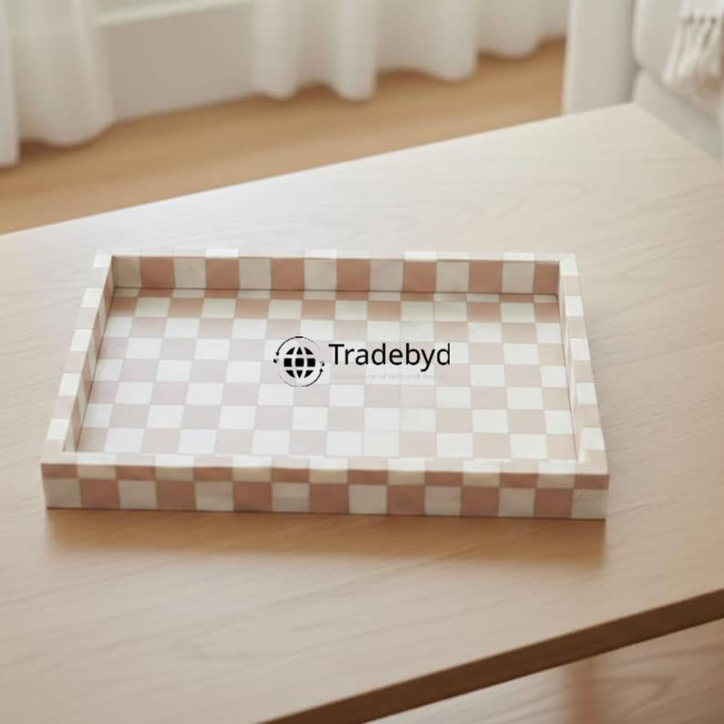 Bandeja Móvil Moderna de Lujo con Incrustaciones de Hueso, Decorativa para Servir, Ideal para Decoración de Comedor, por Tradebyd