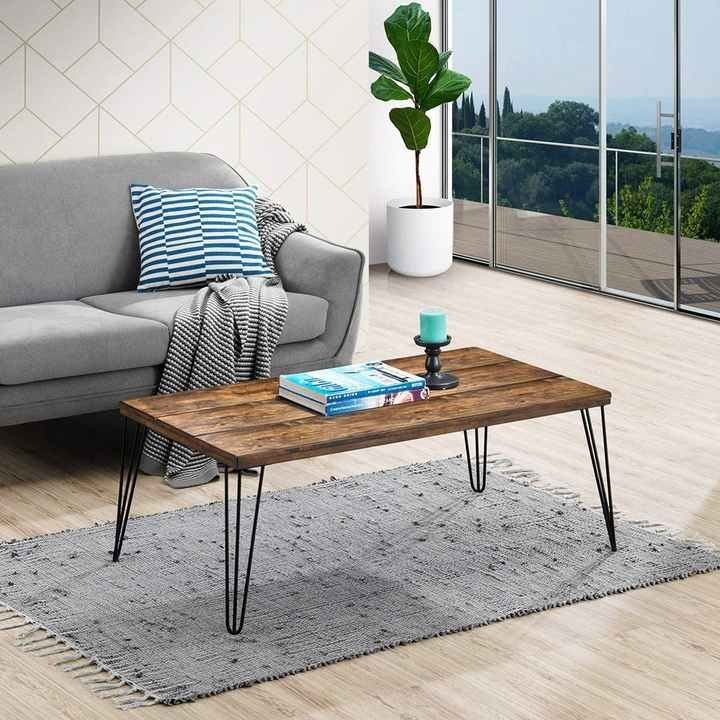 Mesa de centro con marco de Metal moderno de primera calidad, muebles de madera maciza con estilo duradero para el hogar para salones de jardín, restaurantes, decoración de interiores