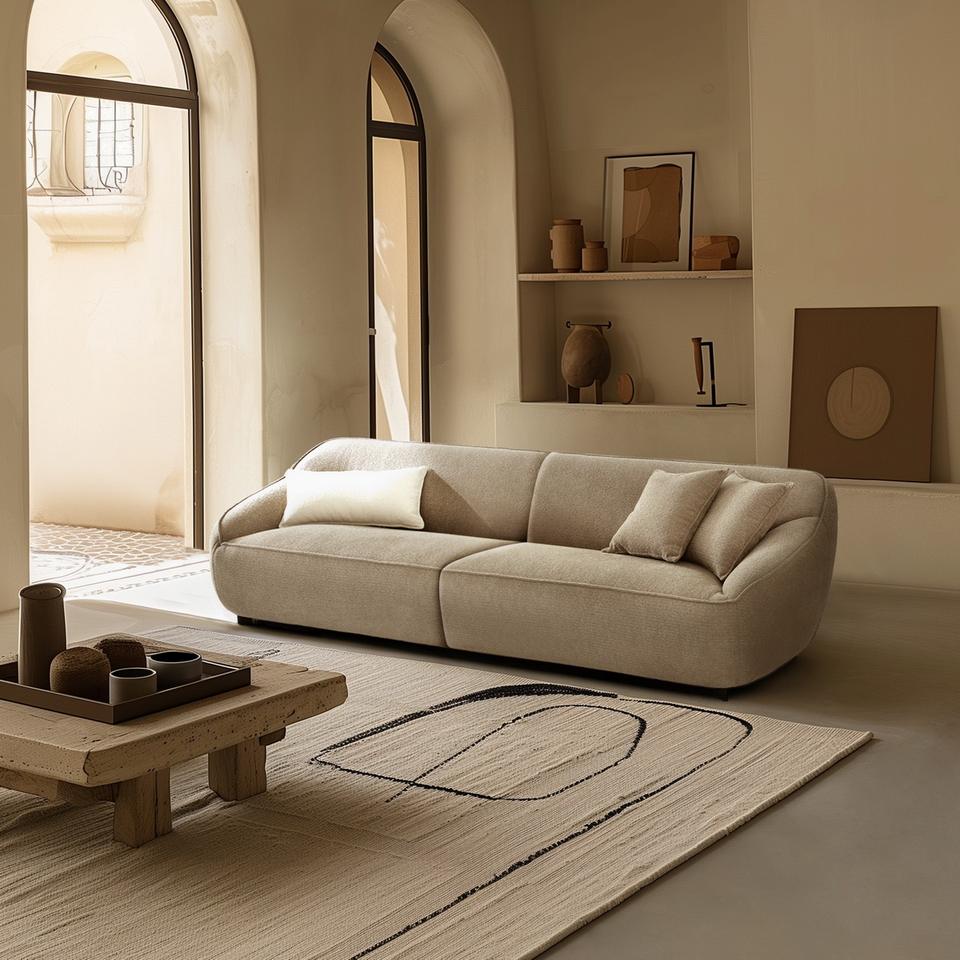 Nombre del producto:Sofás de sala de estar capitoné de tres plazas de lino y algodón gris