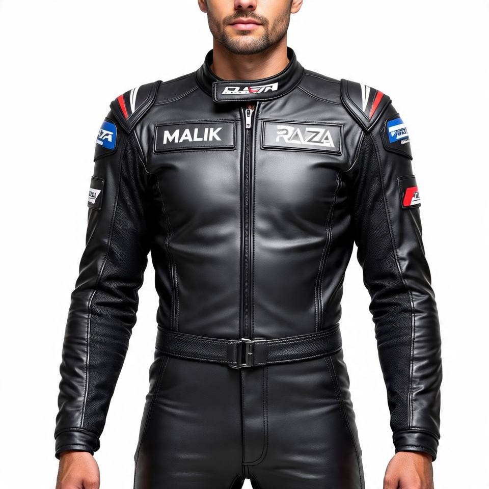 Traje de dos piezas de cuero de motocicleta premium-Acabado de lujo, hecho en Pakistán por Malik Raza, personalización completa