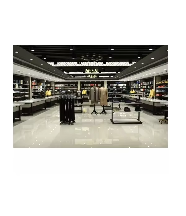 Diseño de Interiores de Tienda Multicategoría Premium, Acabados de Alta Calidad, Muebles Modulares, Exhibidores Personalizables, Diseño Elegante para Comercios