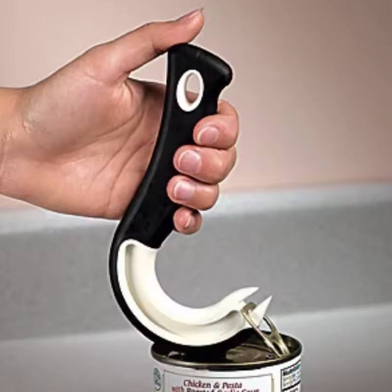 Abridor de tapas manual multifuncional de plástico premium con gancho antideslizante y orificio para colgar, ideal para abrir frascos, botellas y latas.