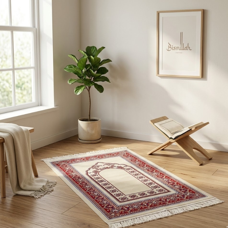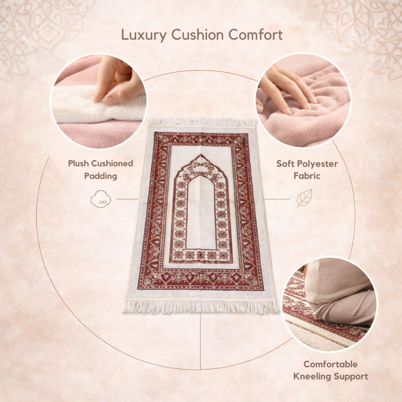 Alfombra de Oración Musulmana Premium | Alfombra de oración islámica acolchada de felpa con diseño moderno de kilim persa bohemio – Lavable 2x3 pies