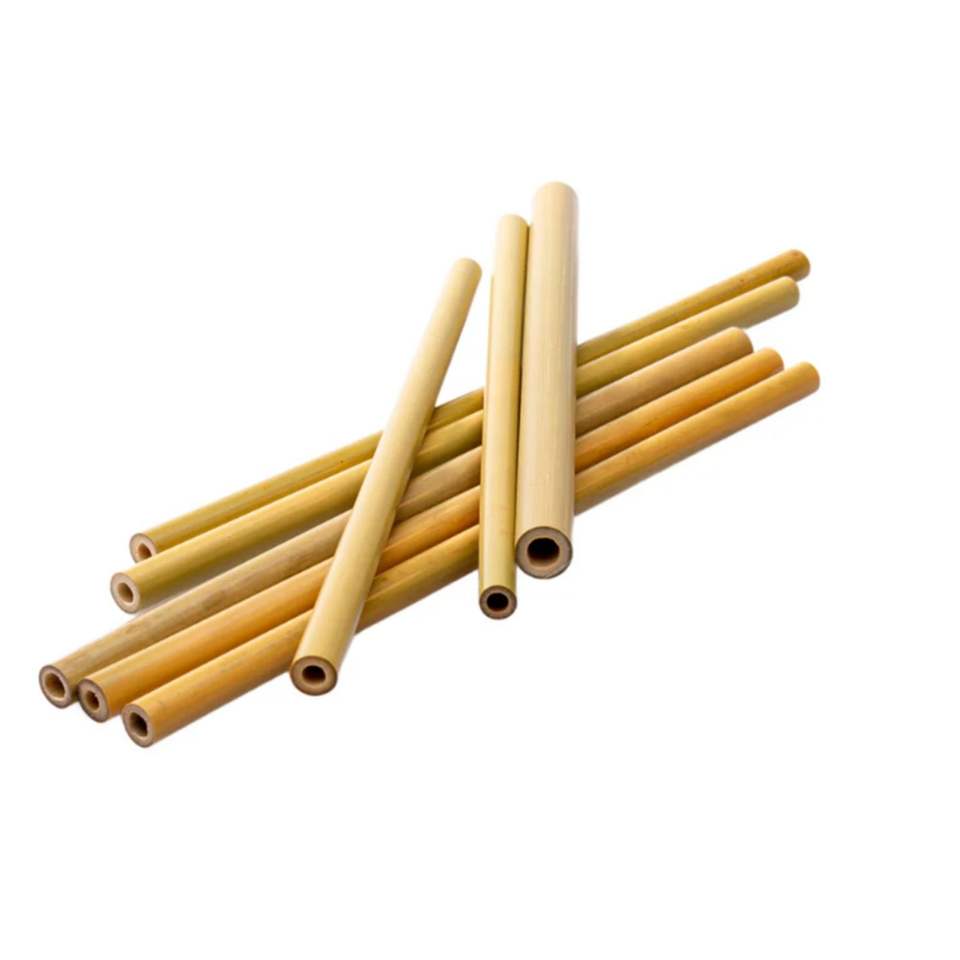 Pajitas de bambú natural premium, compostables y biodegradables, envasadas para uso doméstico y servicio de bebidas comerciales.