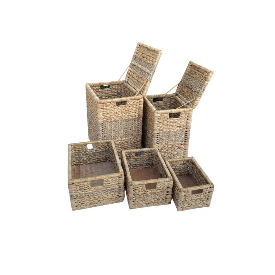 Cestas Decorativas Tejidas de Jacinto de Agua Natural Premium, Bandeja Rectangular Mixta, Artesanía Vietnamita