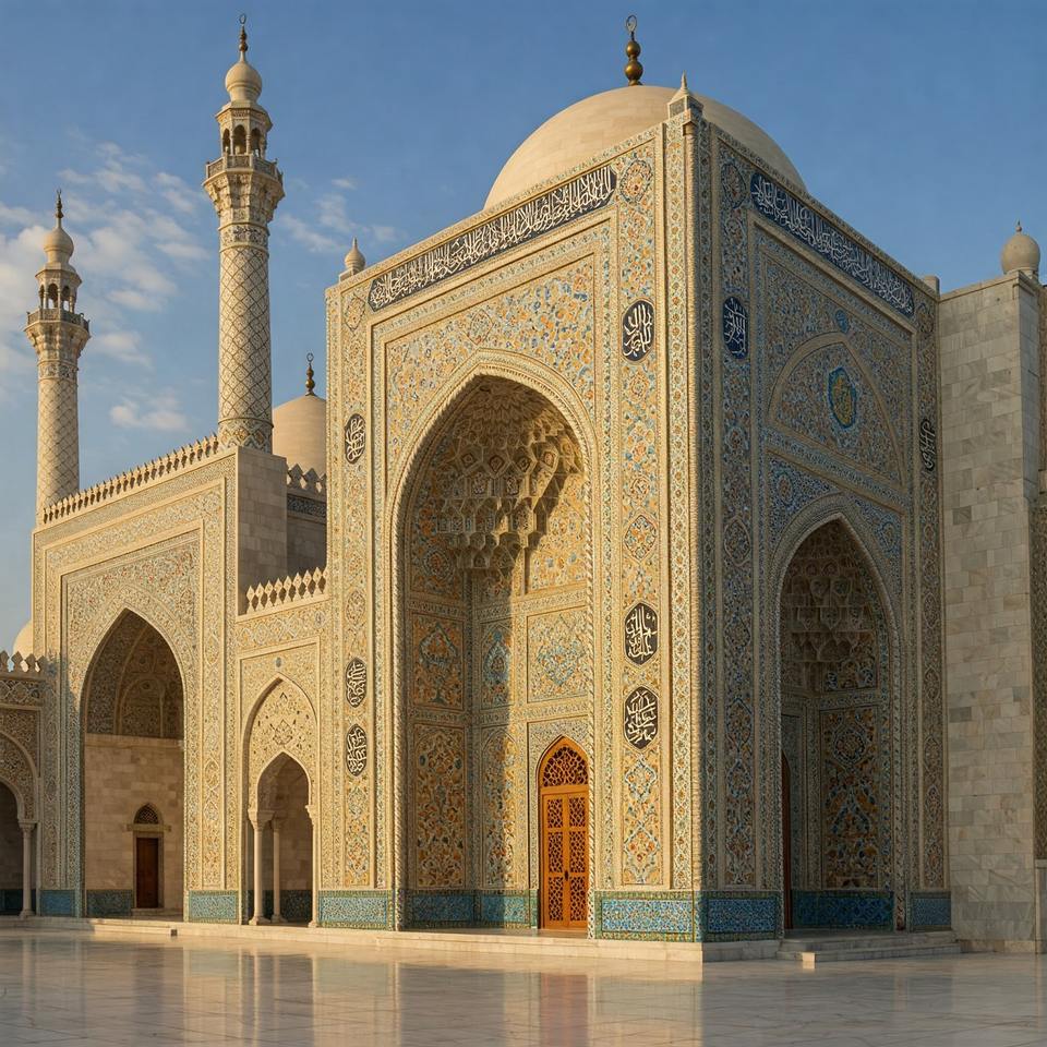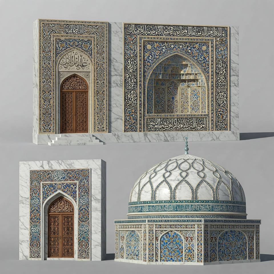 Mármol Natural Premium para Decoración Interior y Exterior de Mezquitas, Patrones Islámicos, Diseño Moderno, Tallado a Mano, Resistente a la Intemperie