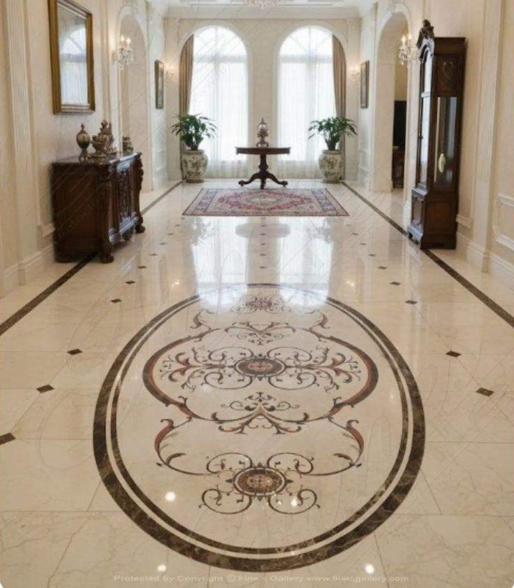 Diseño de Piso de Mármol Natural Premium con Incrustaciones, Antideslizante e Impermeable para Espacios de Lujo, Hospitales y Escuelas