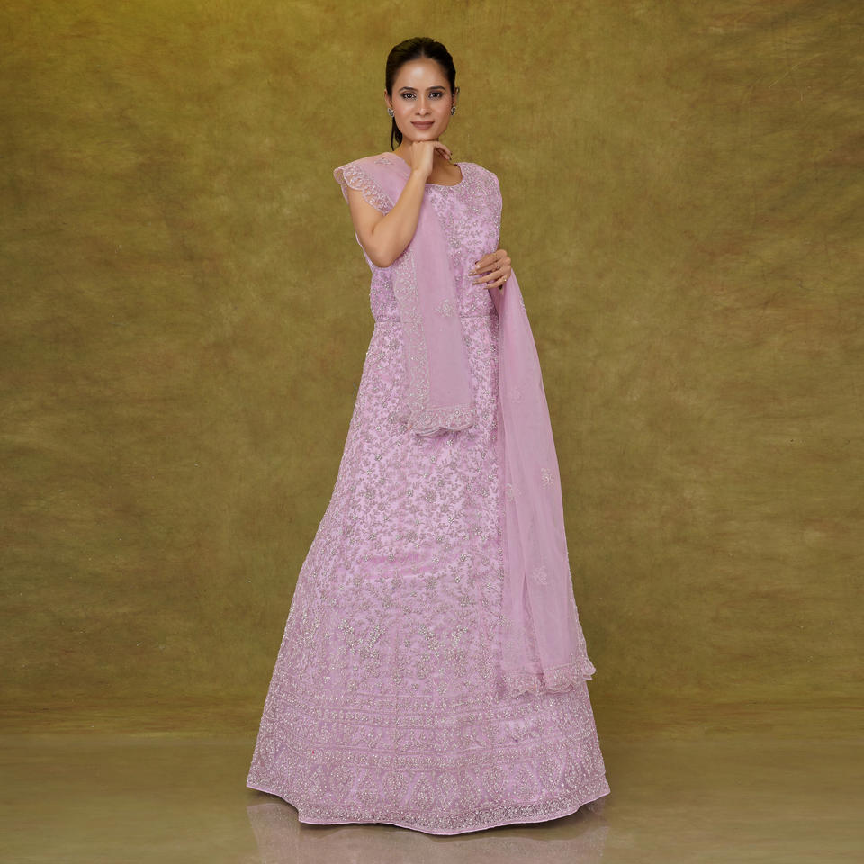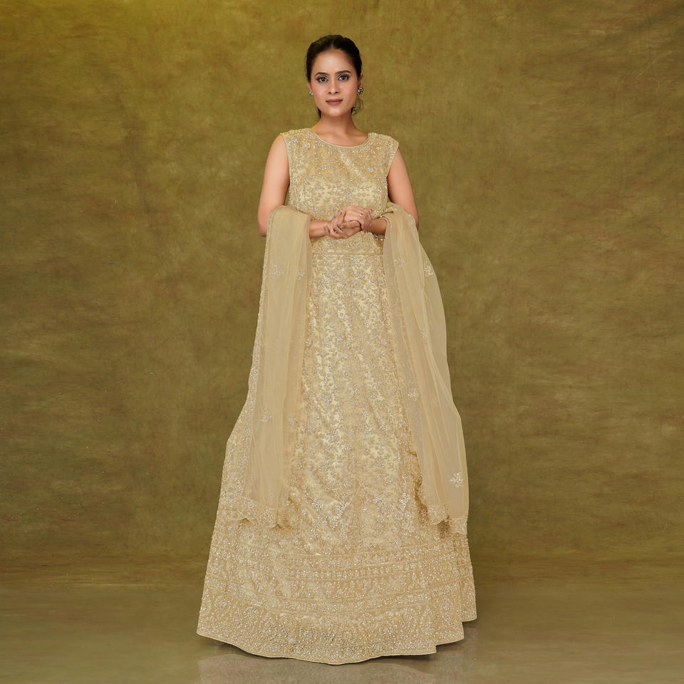 Vestido de Noche Bordado de Primera Calidad con Trabajo de Bordado Completo, Silueta Elegante y Evase, Dupatta Transparente, para Eventos Especiales