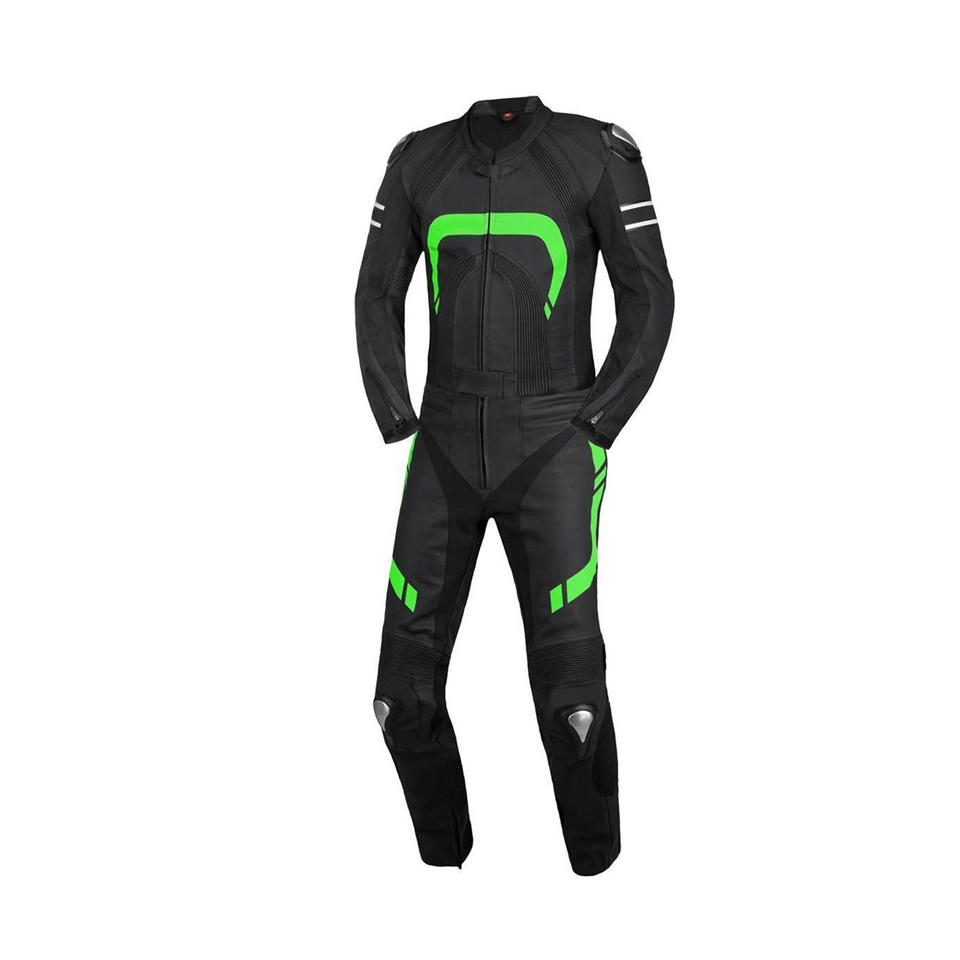 Nuevo diseño premium, panel naranja y negro, manga larga, producción acolchada, traje de carreras de cuero para adultos