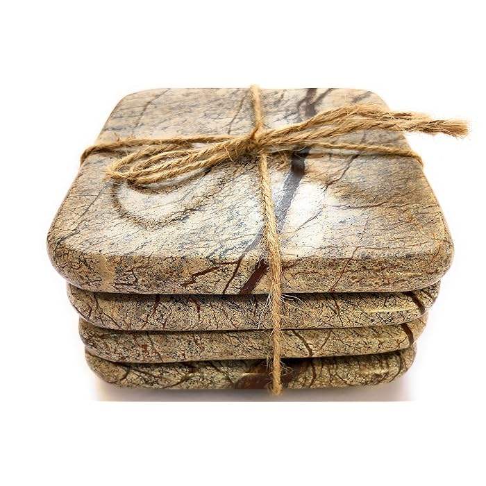 Juego de 4 piezas Premium de posavasos de mármol octogonales de alta resistencia, alfombrillas y almohadillas de piedra para decoración de mesa, diseño elegante