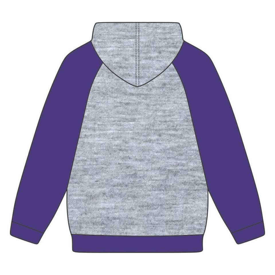 Premium Omega Fraternity Heather Grey Hoodie Purple Raglan Sleeves con Chenille Bordado Logo Divine Nine Founding Year 19XX