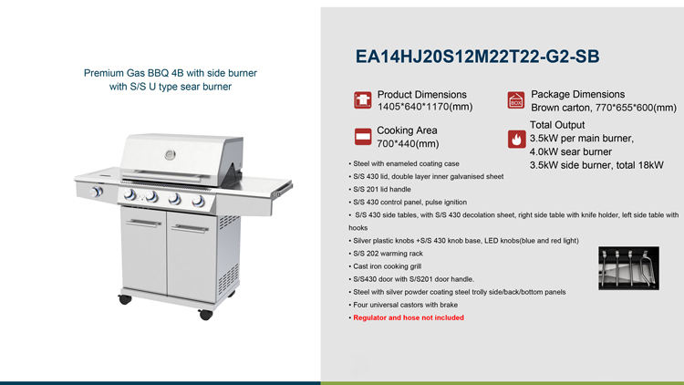 Fácil de ensamblar, De limpieza fácil, Encendido electrónico de impulsos, Encendido piezoeléctricoCaracterística