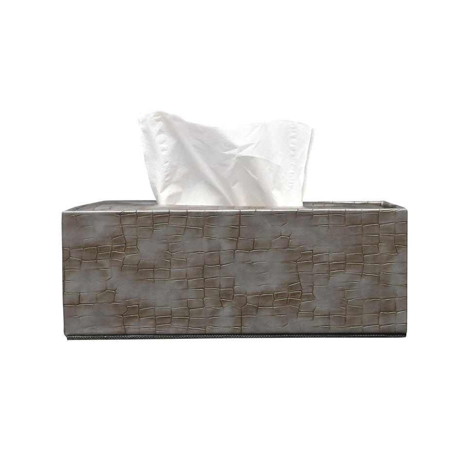 Caja de pañuelos de cuero PU Premium Color gris grafito, dispensador de servilletas cuadradas para el hogar y C
