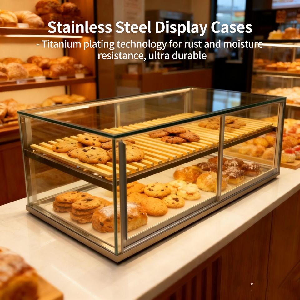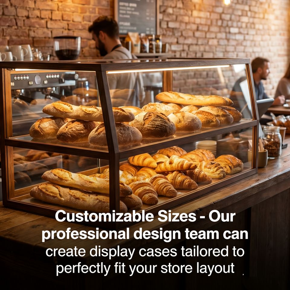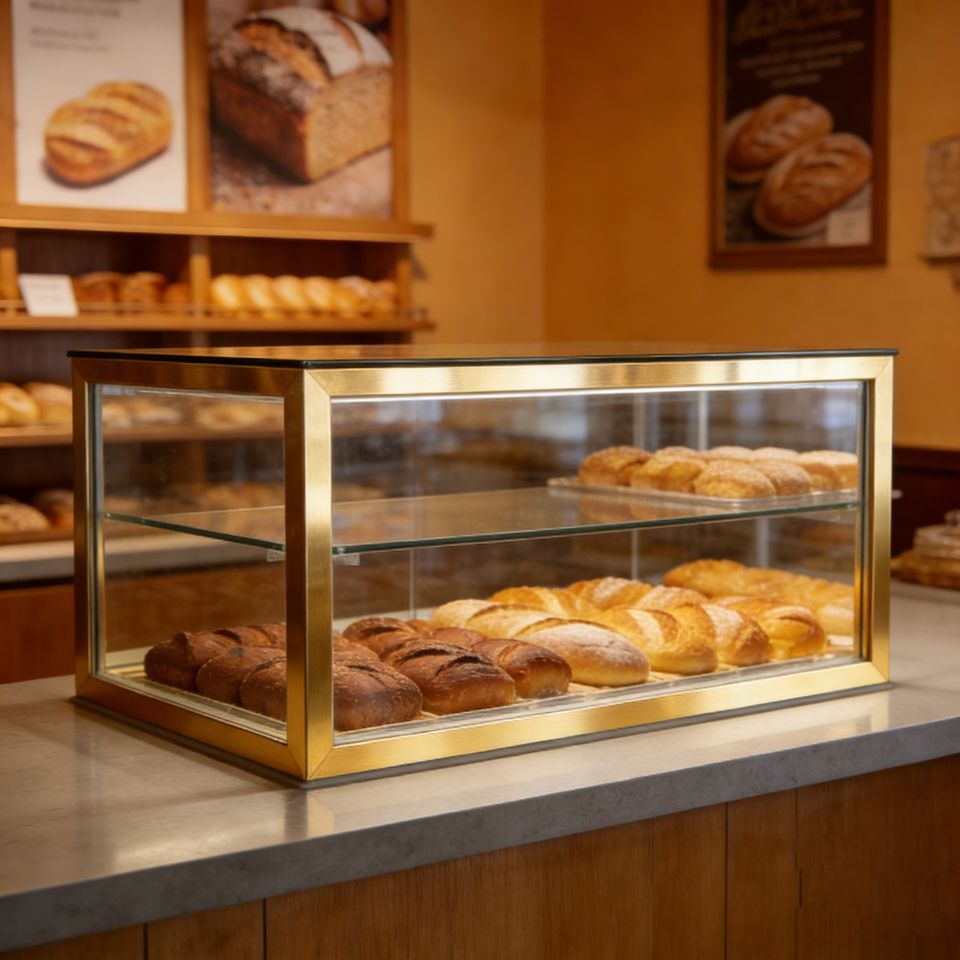 Vitrina Premium para Pastelería para Cafeterías, Vidrio Templado de Alta Claridad, Marco Metálico Resistente, Ahorro de Espacio, para Mostrador