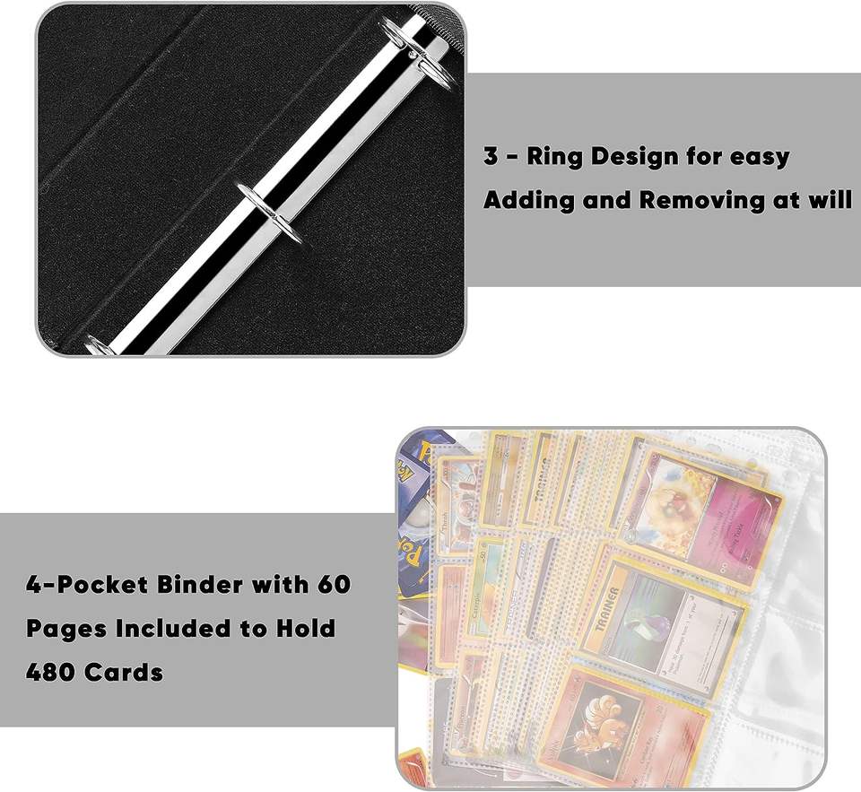 Álbum de Cartas Coleccionables Pokémon Premium, Carpeta con Anillas y Cremallera, 4 Bolsillos