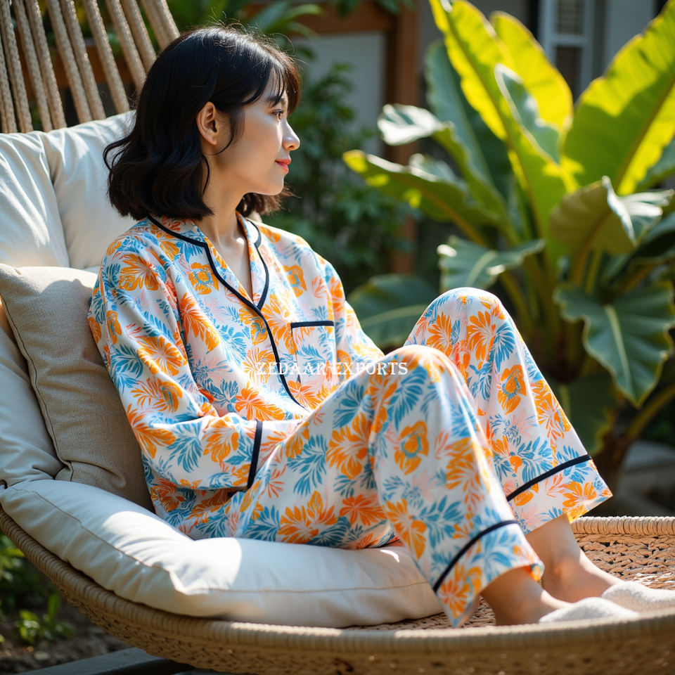Nombre del producto:Premium impreso Pijama de algodón ropa de dormir Conjunto para las mujeres