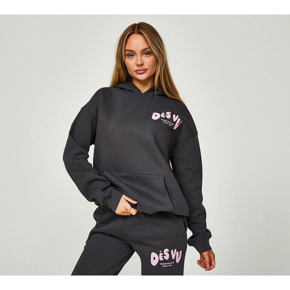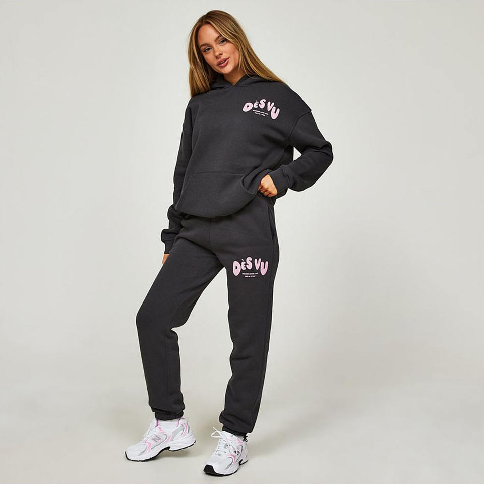 Chándal de dos piezas para mujer de calidad superior 100% algodón Color sólido cuello con capucha diseño liso de gran tamaño para damas