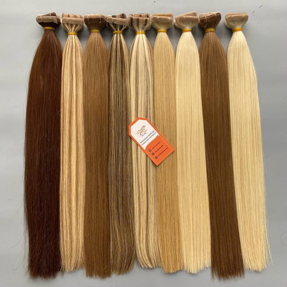 Extensiones de trama de cabello humano vietnamita Remy 100%, cutícula 12A completa de calidad superior, cinta para piel cruda