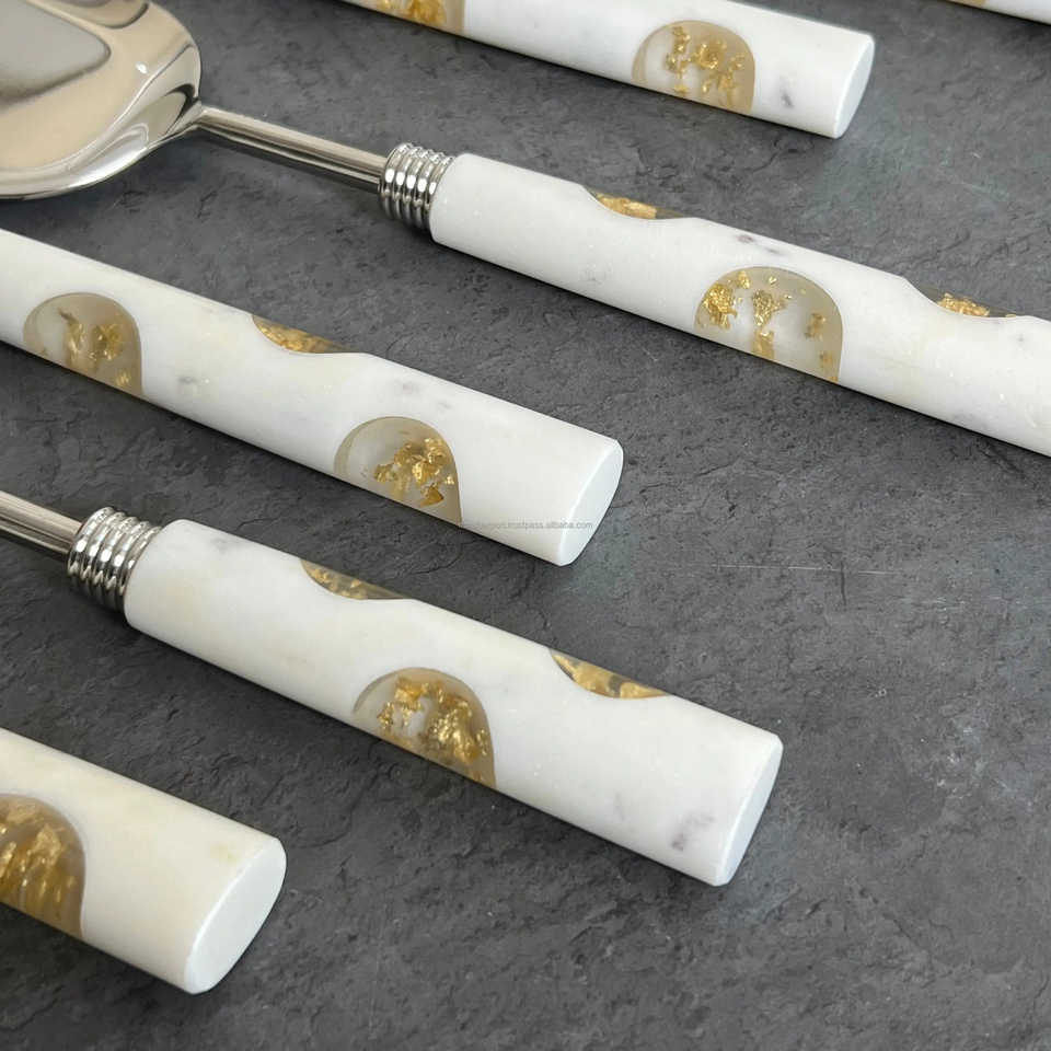 Juego de cubiertos de 4 piezas de calidad superior Mango de resina Utensilios de acero inoxidable Diseño único Utensilios de cocina artísticos para el hogar Regalos para comer