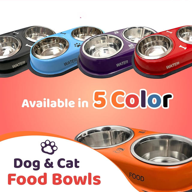 Descripción:Mascotas Empire Dog & Cat Bowl Feeder Double Diner Acero inoxidable