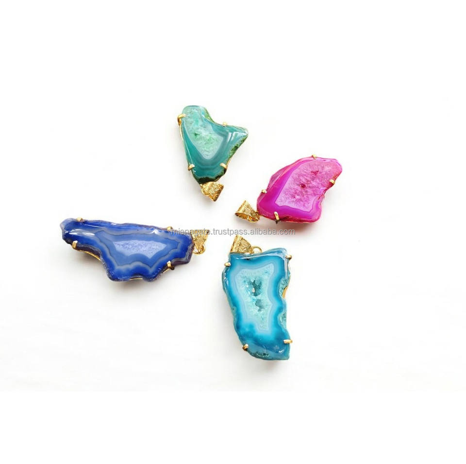 Collar con colgantes de ágata de calidad superior, Natural piedra preciosa, cristal Druzy, colgante de geoda tallada más vendido para regalo de decoración del hogar