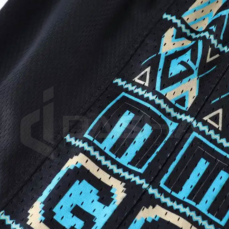 Pantalones cortos de hombre personalizados con estampado completo de calidad superior con bolsillos dobles con cremallera Pantalones cortos de baloncesto de costura interior de 6 pulgadas