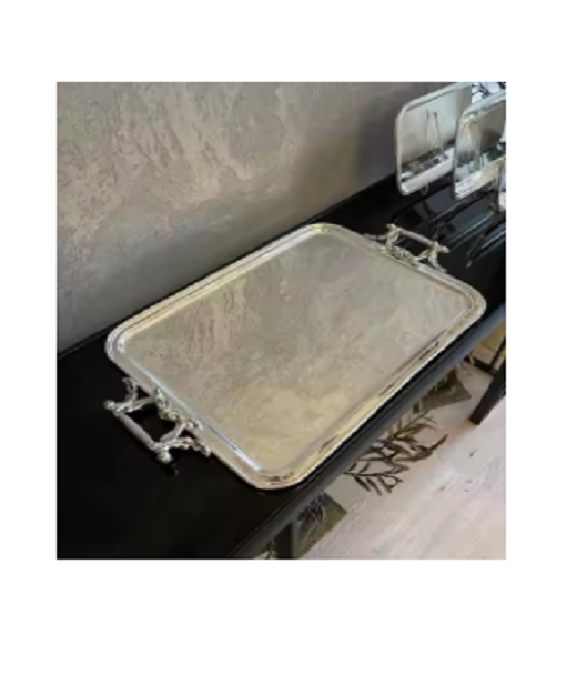 Bandeja de servicio de metal de latón Rectangular de diseño largo de aluminio de calidad superior Fabricante Bandeja de servicio de comida de metal de cobre precio bajo