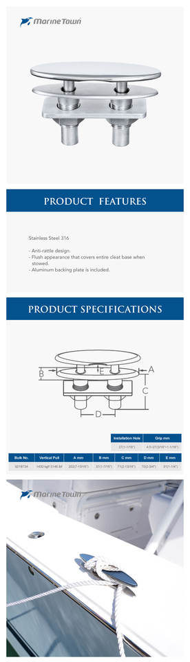 Calidad Premium Anti-Rattle Design Acero inoxidable 316 7-15/16 "202mm Pull Up Boat Flat Cleat