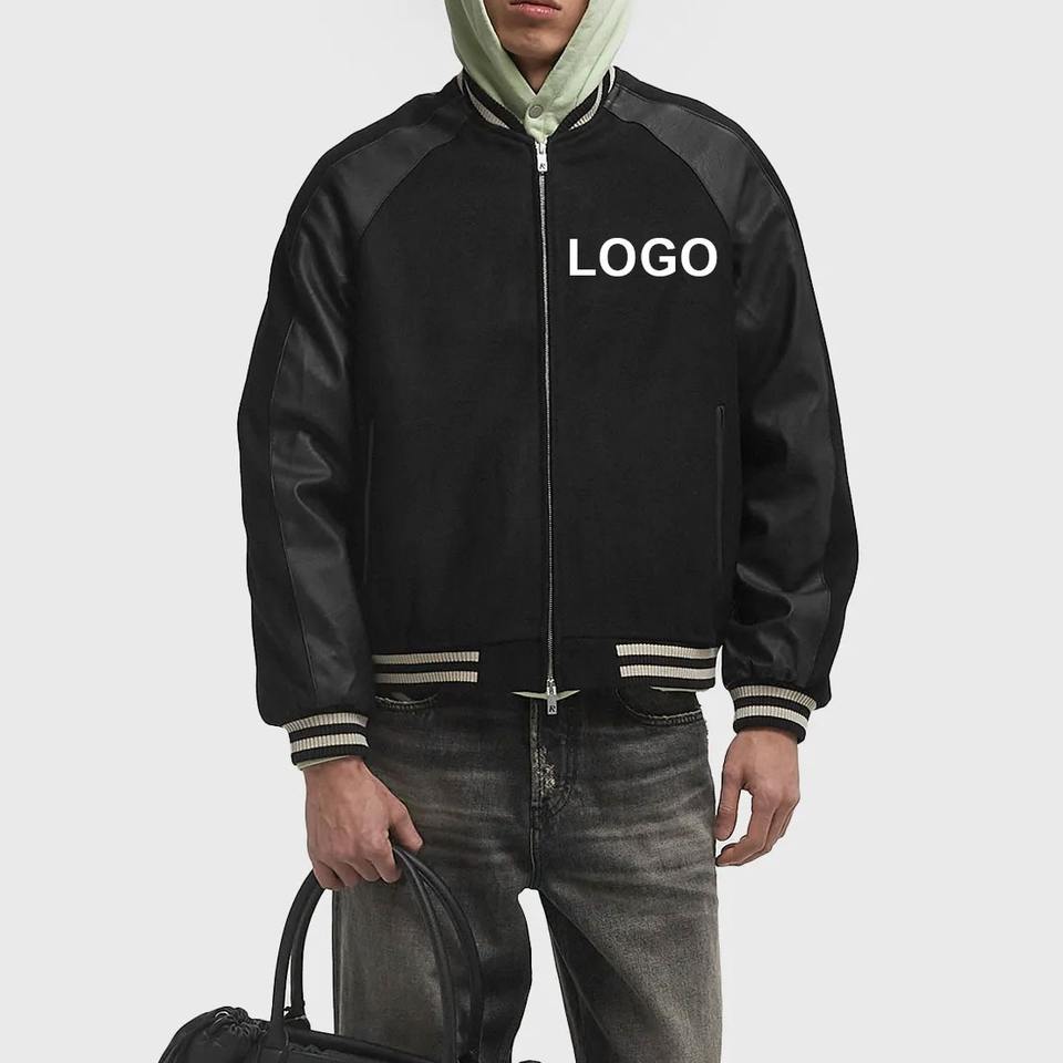 Chaqueta de Béisbol para Hombre de Primera Calidad, Logotipo Personalizado, Informal, Manga Larga, Lana Pura, Cierre de Cremallera, Forro Acolchado, Cuello Alto, Estilo Universitario