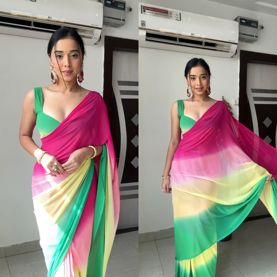 Hermoso Sari estampado de Georgette de calidad superior Ideal para ropa festiva e informal de proveedor indio