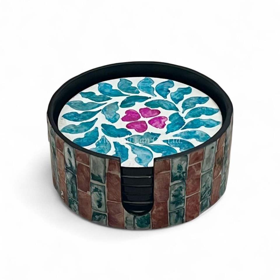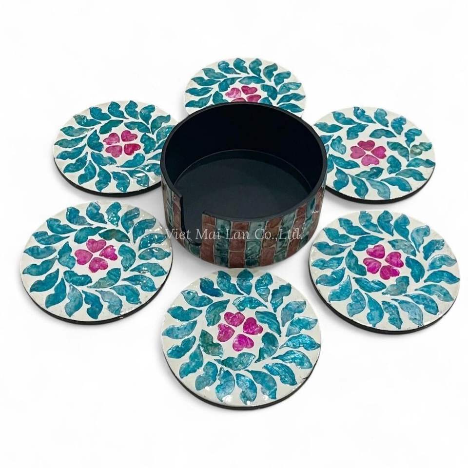 Juego de Posavasos de Nácar de Primera Calidad, Estilo Bohemio, Caja de Nácar Hecha a Mano para Guardar Posavasos, Hecho en Vietnam