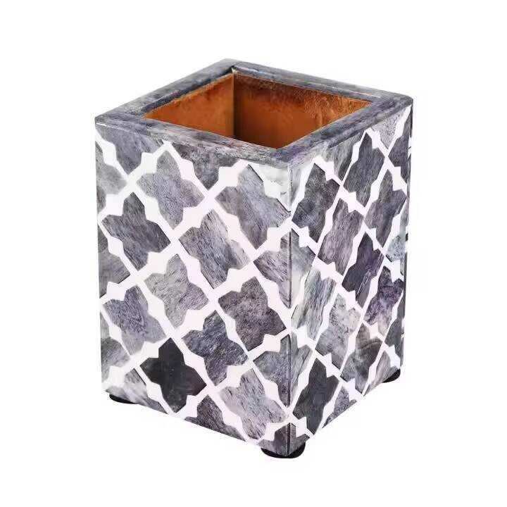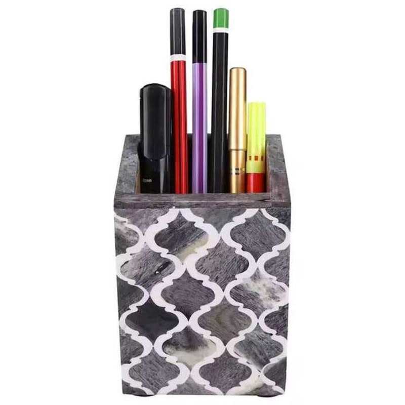 Portalápices de Hueso Incrustado de Calidad Premium, Forma Cuadrada, para Escritorio, Porta Lápices, Porta Marcadores