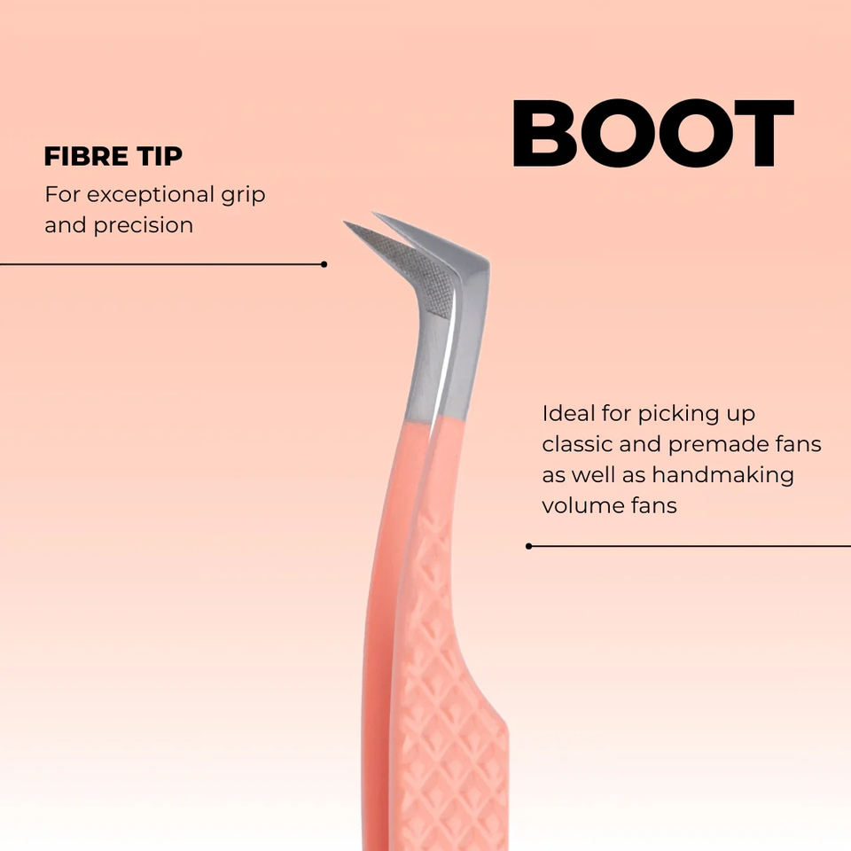 Pinzas de extensión de pestañas de volumen de bota de calidad superior Pinzas de extensión de pestañas de punta de fibra personalizadas