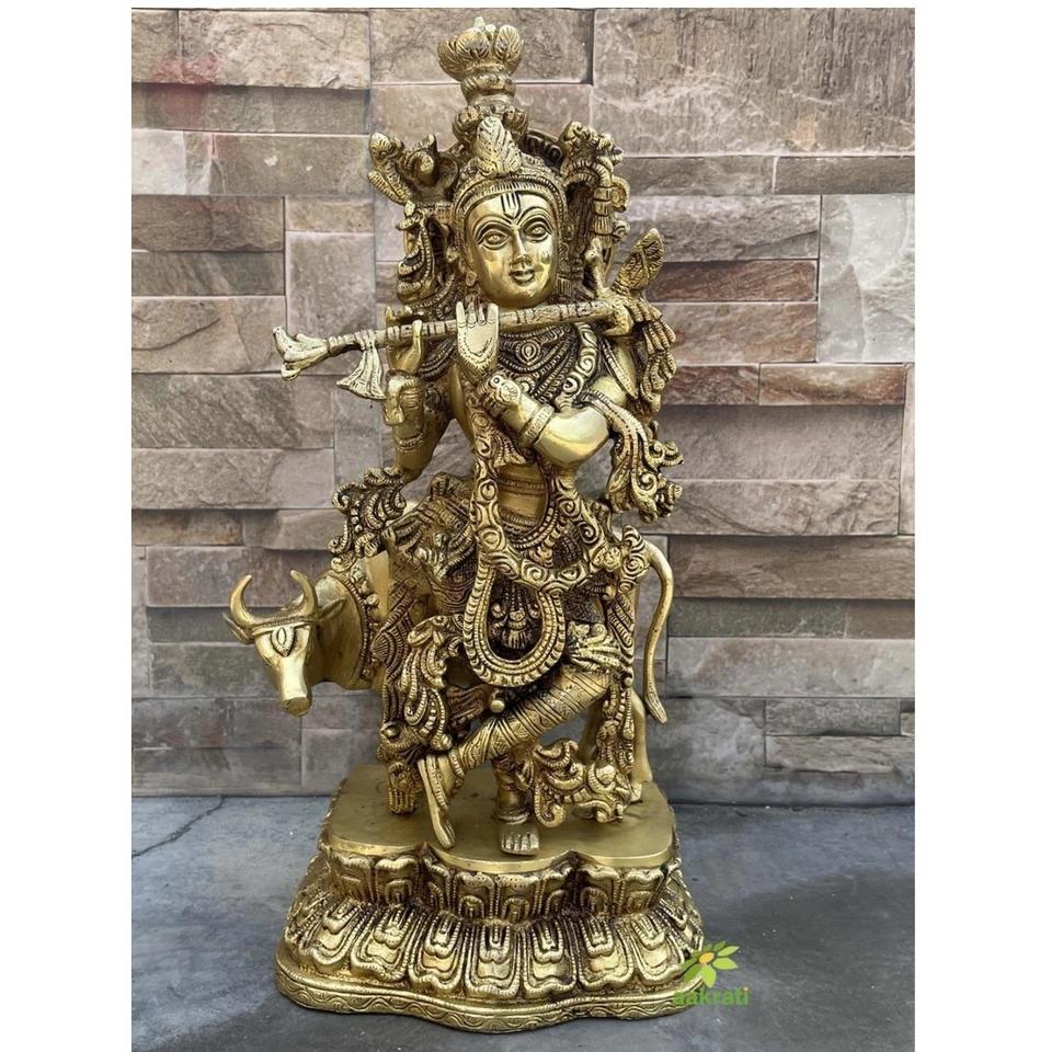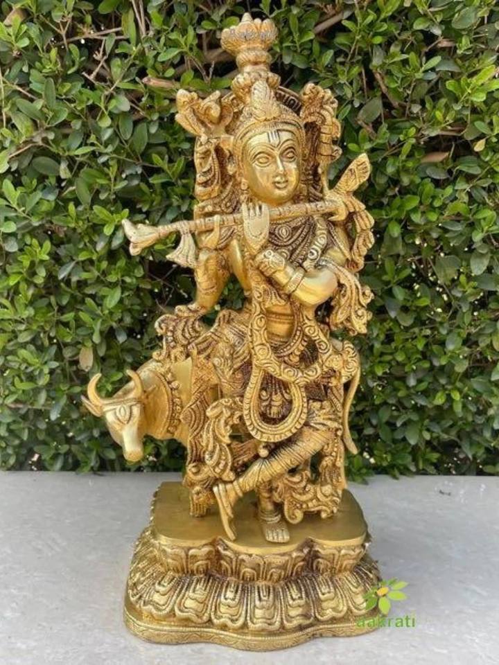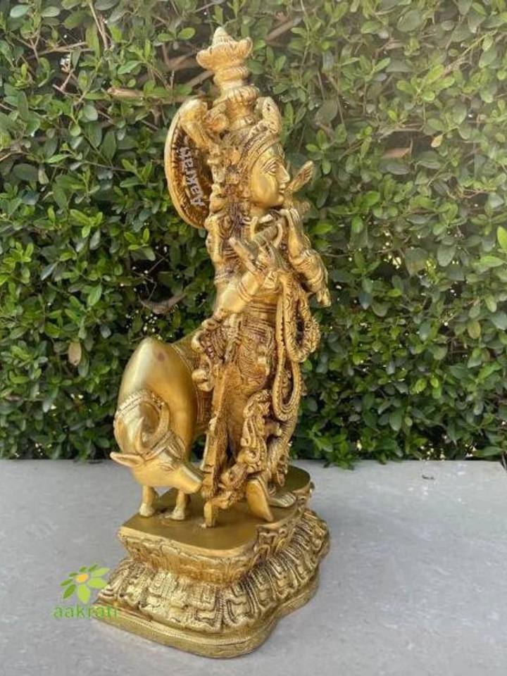 Ídolo de Lord Krishna de latón de calidad superior con brillo dorado para decoración de templos y ocasiones de regalos religiosos