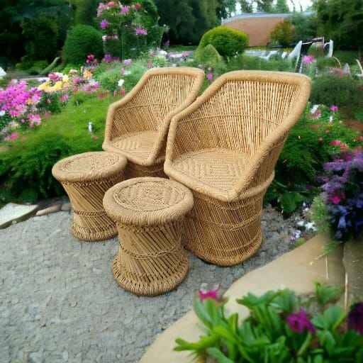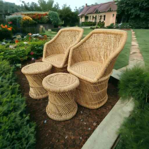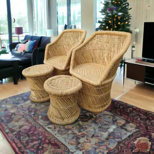 Juego de sillas de caña de bambú de ratán hechas a mano a granel de calidad superior de 2 2 taburetes otomanos para comedor, villas, sala de estar, oficina, cafetería