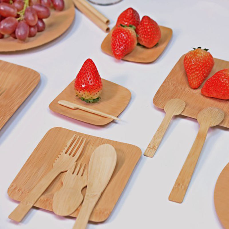 Juego de cubiertos de bambú personalizados de calidad superior, cuchara desechable biodegradable, cuchillo, tenedor, viajes al aire libre, Camping, fiestas de boda