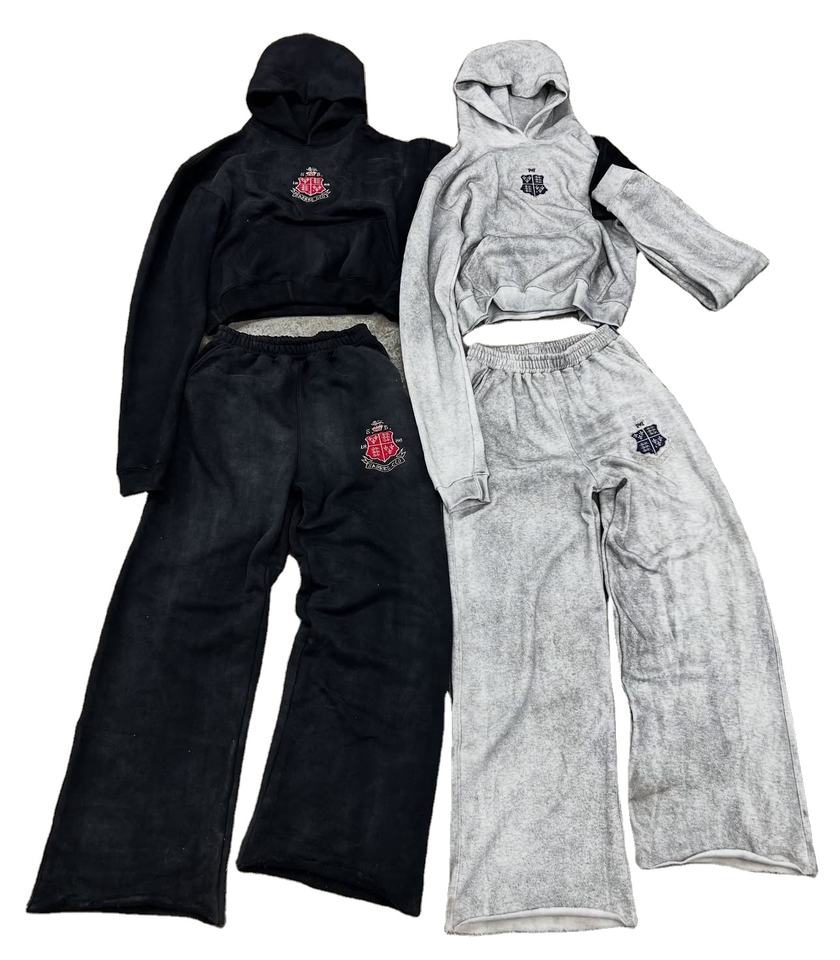 Chándal de gran tamaño de lavado Vintage de peso pesado personalizado de calidad superior Conjunto de joggers para hombre Sudadera con capucha desgastada de talla grande