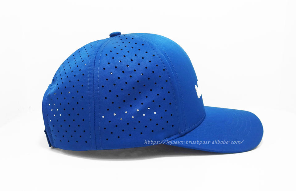 Gorra de béisbol perforada de poliéster resistente al agua estructurada con logotipo personalizable, moda joven y clásica, hecha en fábrica de Vietnam