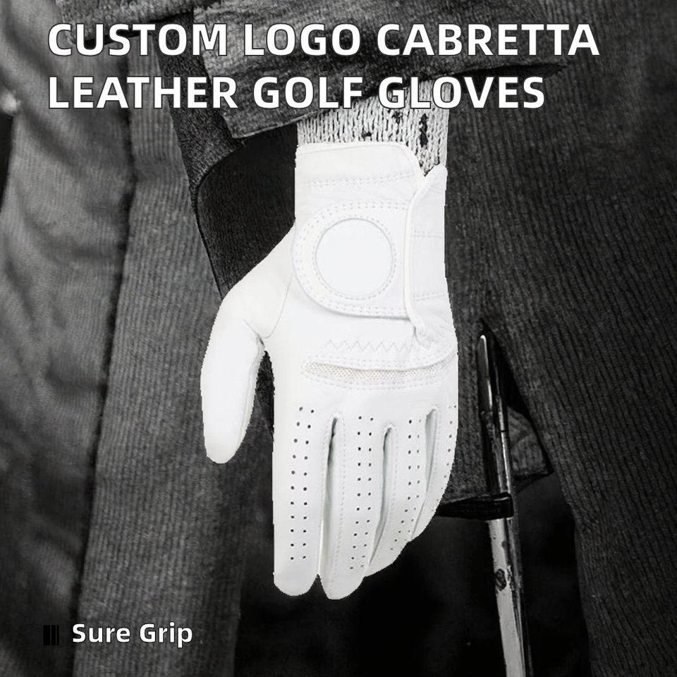 Guantes de Golf de Piel Cabretta con Logotipo Personalizado de Primera Calidad, Cierre de Gancho y Bucle Antideslizante, para Hombre, Viajes, Pesca, Deportes
