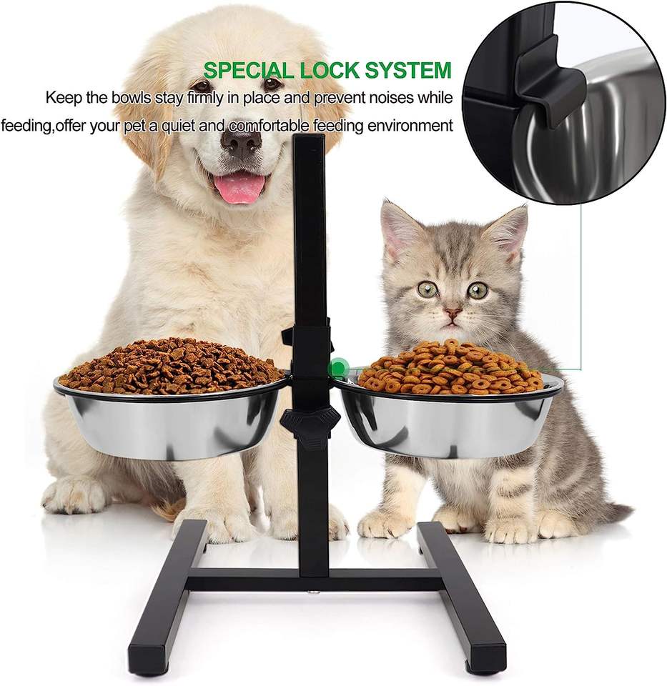 Keyword:stainless steel adjustable double diner for pets