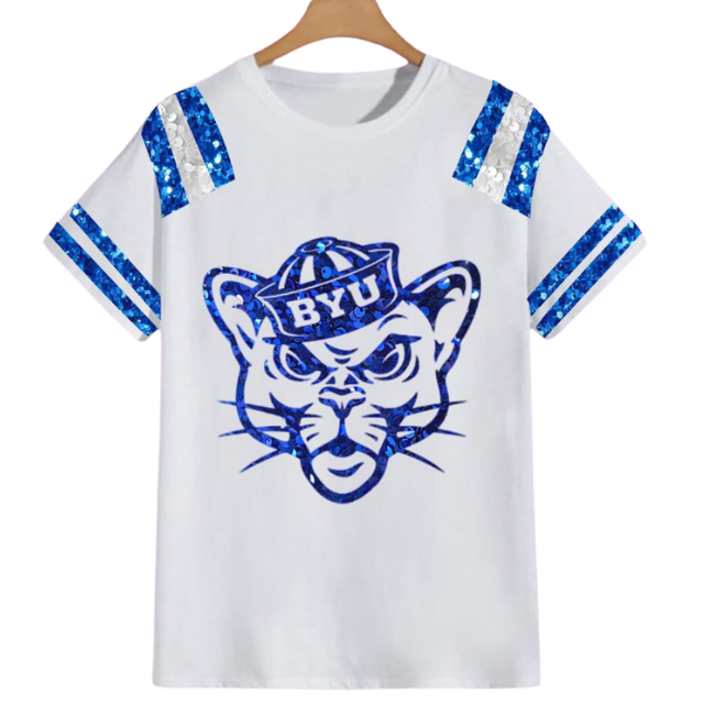Products Name:100% Cotton Women Game Day Sequin Embroidered T-shirts
